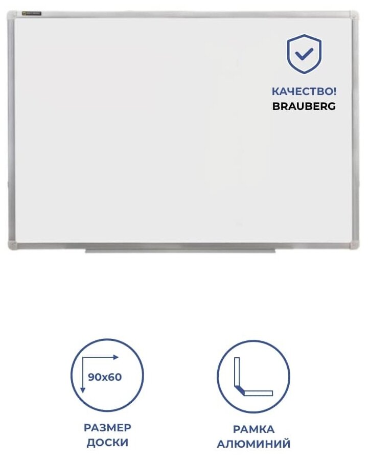Доска магнитно-маркерная BRAUBERG стандарт, 60x90 см, алюминиевая рамка,
