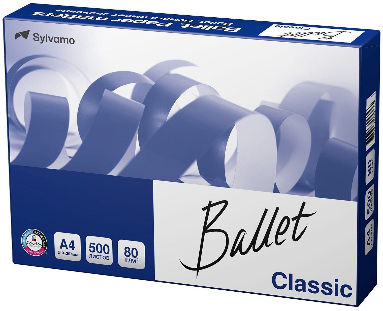 Бумага офисная А4, 80 г/м2, 500 л., марка В, BALLET CLASSIC, ColorLok, Россия, 153% (CIE), 110085