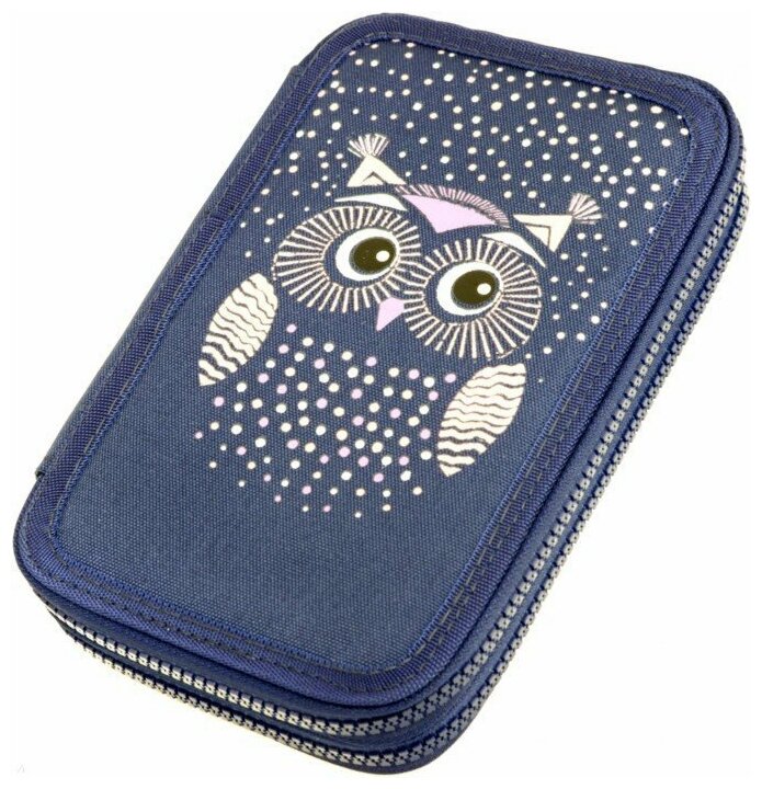 Пенал BrunoVisconti, на молнии, два отделения , синий, 200х130 мм, "совенок", Арт. 14-051/02