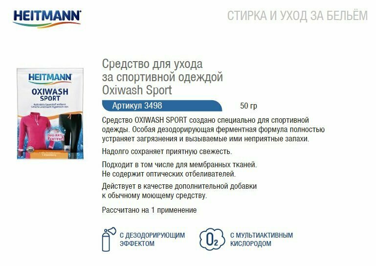 Heitmann Специальное средство для стирки спортивной одежды Oxi Wash Sport 50 г интересное: