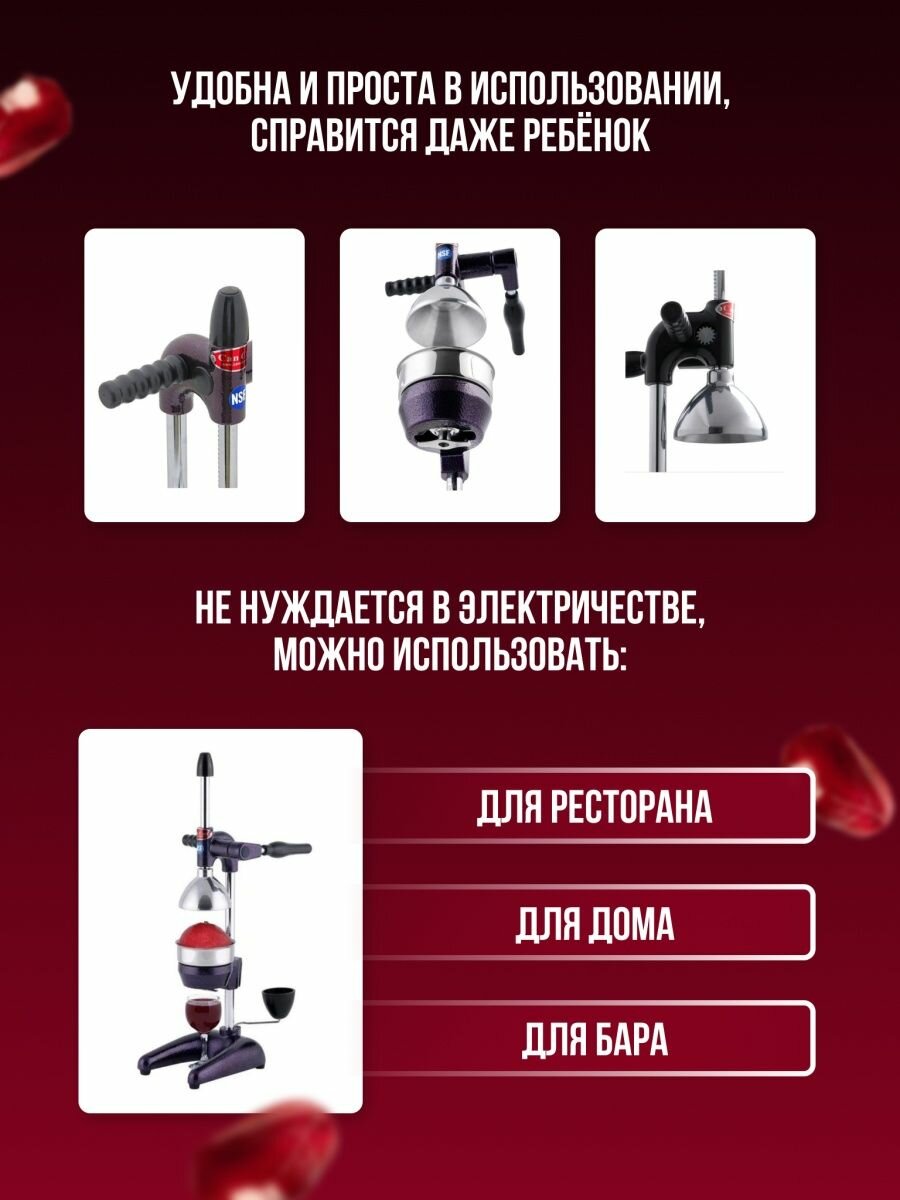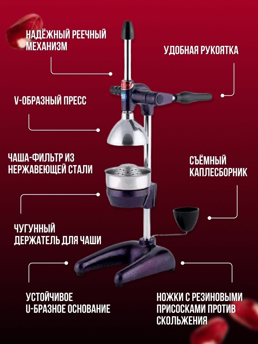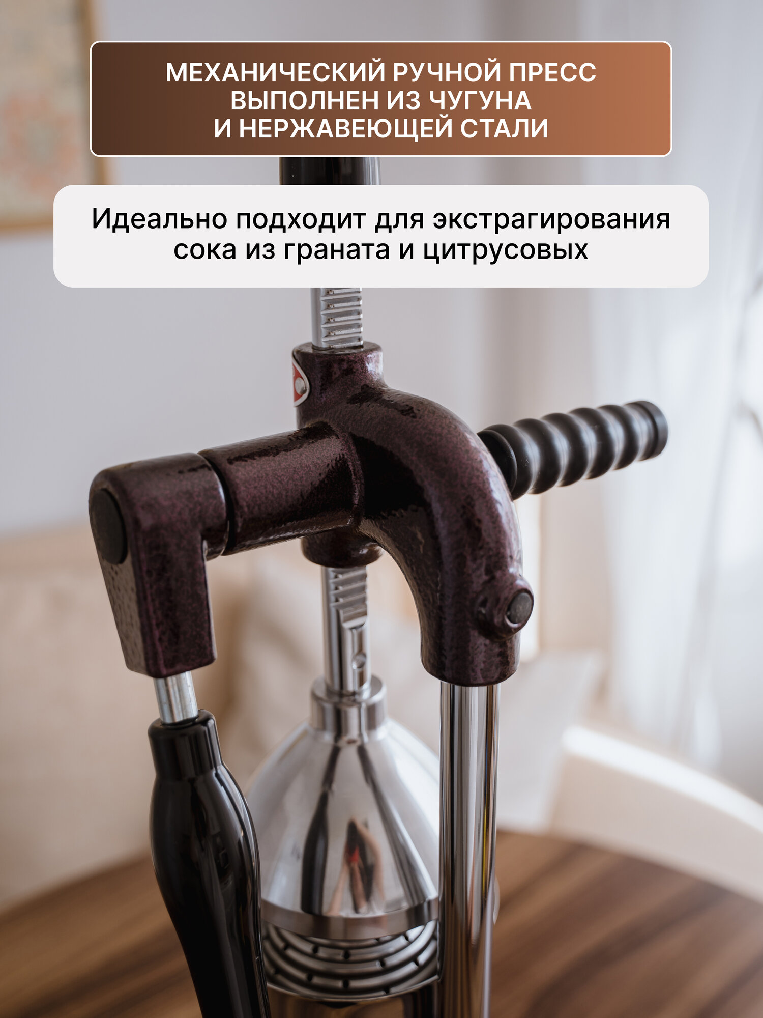 | Плюсы: | Крепкая конструкция. Мощный рычаг. Гранаты давит на раз-два. Жмых остаётся сухой. |
