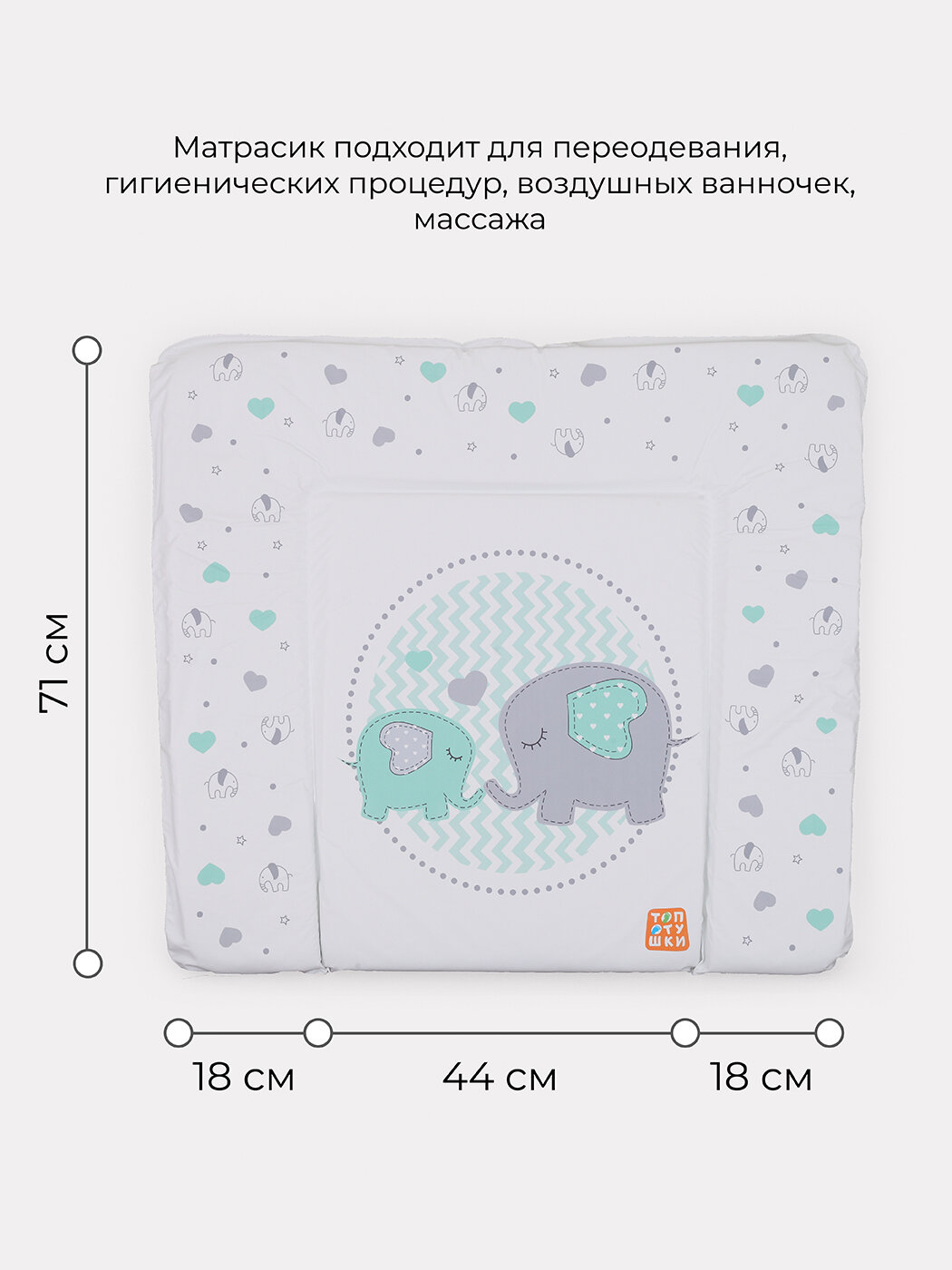 Пеленальный матрас Топотушки 80х71 см, слоники бирюза