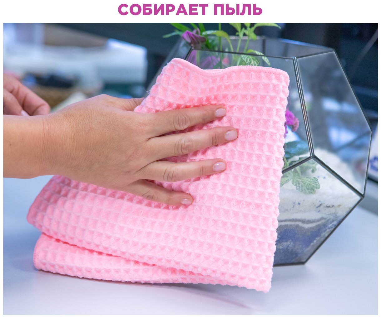 Салфетка-микрофибра универсальная, 50 х 40 см, PATERRA, розовое/зеленое