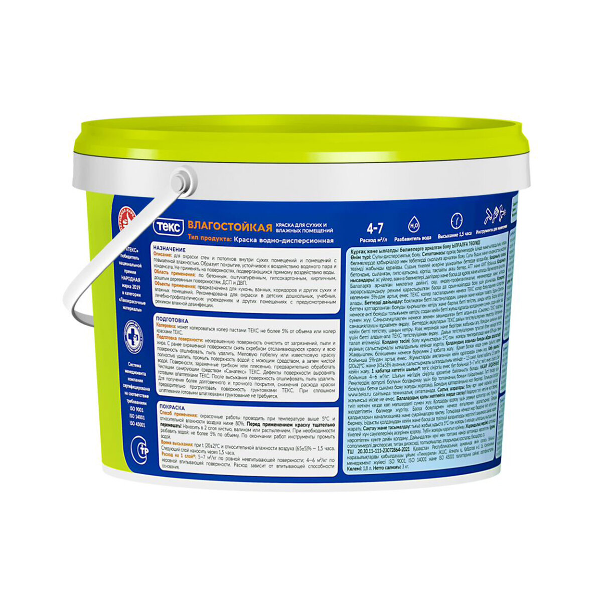 Текс Влагостойкая краска водно-дисперсионная (3кг) / текс Влагостойкая краска водоэмульсионная (3кг) класс универсал