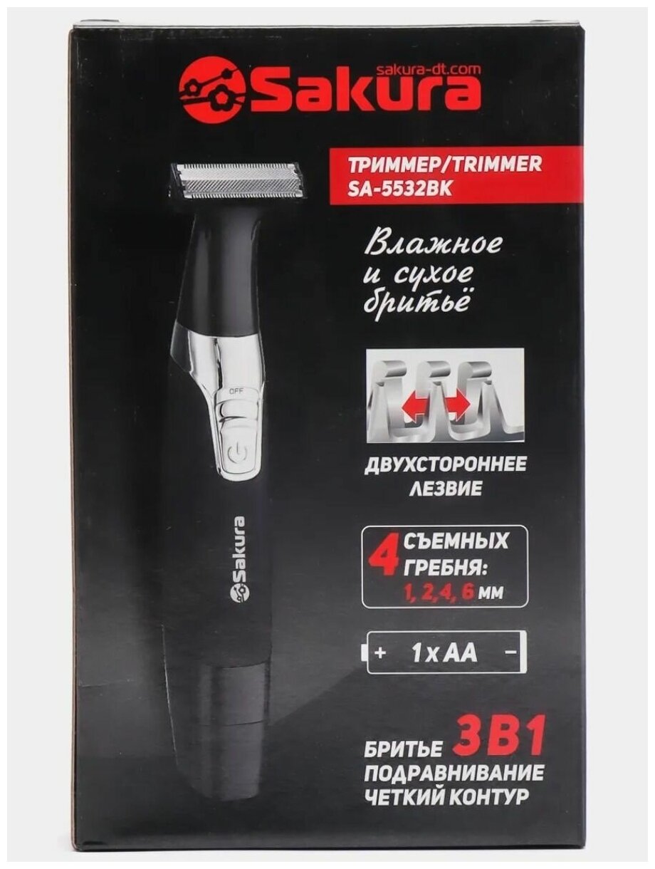 Триммер для бороды Sakura, 4 насадки, от батарейки, 1,2,4,6 мм интересное: