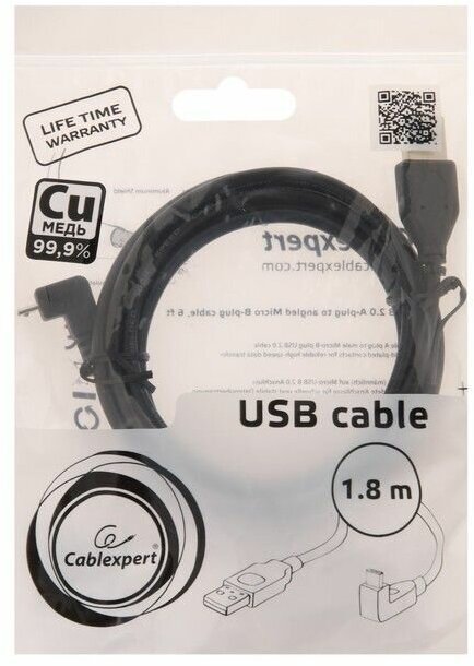 Ниже Вы можете прочитать отзывы на Кабель USB 2.0 Pro Cablexpert CCP-mUSB2-AMBM90-6, AM/microBM 5P, 1,8 м, угловой, экран, черный, ознакомится с подробными характеристиками, посмотреть интересные обзоры и фотографии на Кабель USB 2.0 Pro Cablexpert CCP-mUSB2-AMBM90-6, AM/microBM 5P, 1,8 м, угловой, экран, черный.