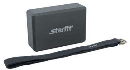 Комплект из блока и ремня для йоги Starfit FA-104,серый