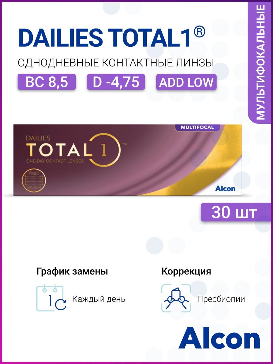 Купить Контактные линзы Alcon, Dailies Total 1 Multifocal, Однодневные, -4,75/ 14,1/ 8,5 / Lo / 30 шт.