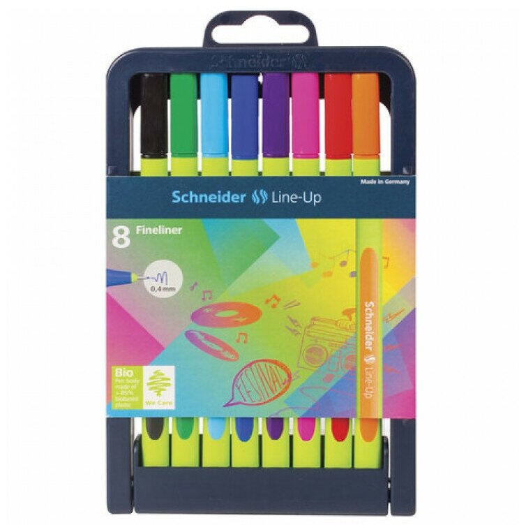Ручки капиллярные цветные Schneider "Line-Up ", толщина линии 0,4 мм, канцелярия для школы и офиса, скетчинга, рисования, письма, набор 8 штук