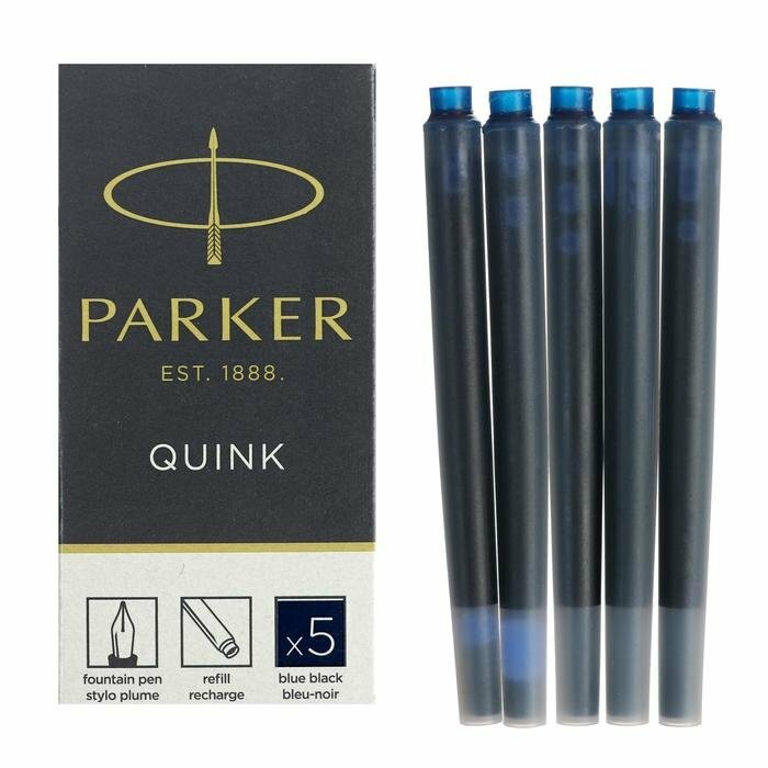 Parker Чернила картридж, темно-синий, 5 шт в упаковке