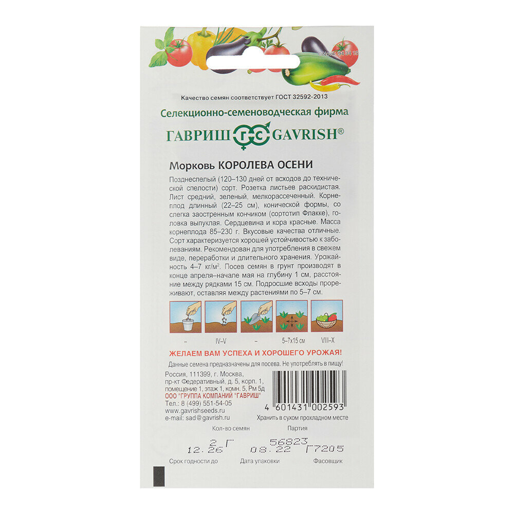 Семена Морковь Королева Осени, 2,0г, Гавриш, Овощная коллекция, 10 пакетиков
