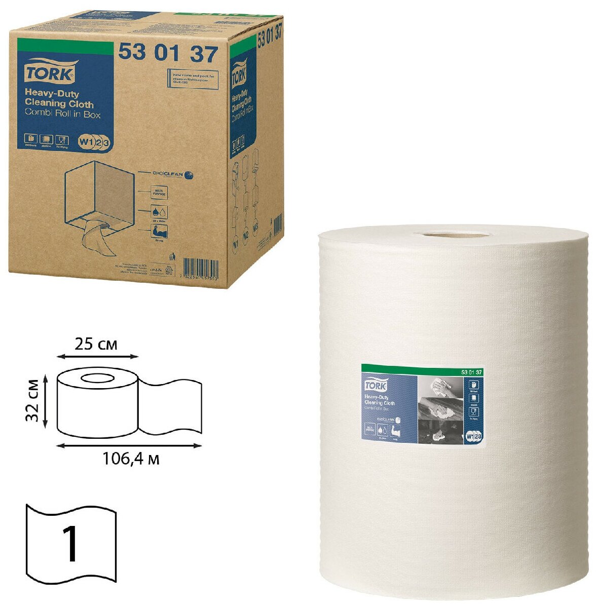 Материал протирочный нетканый Tork W1/W2/W3 280лx1рул/кор, белый 530137