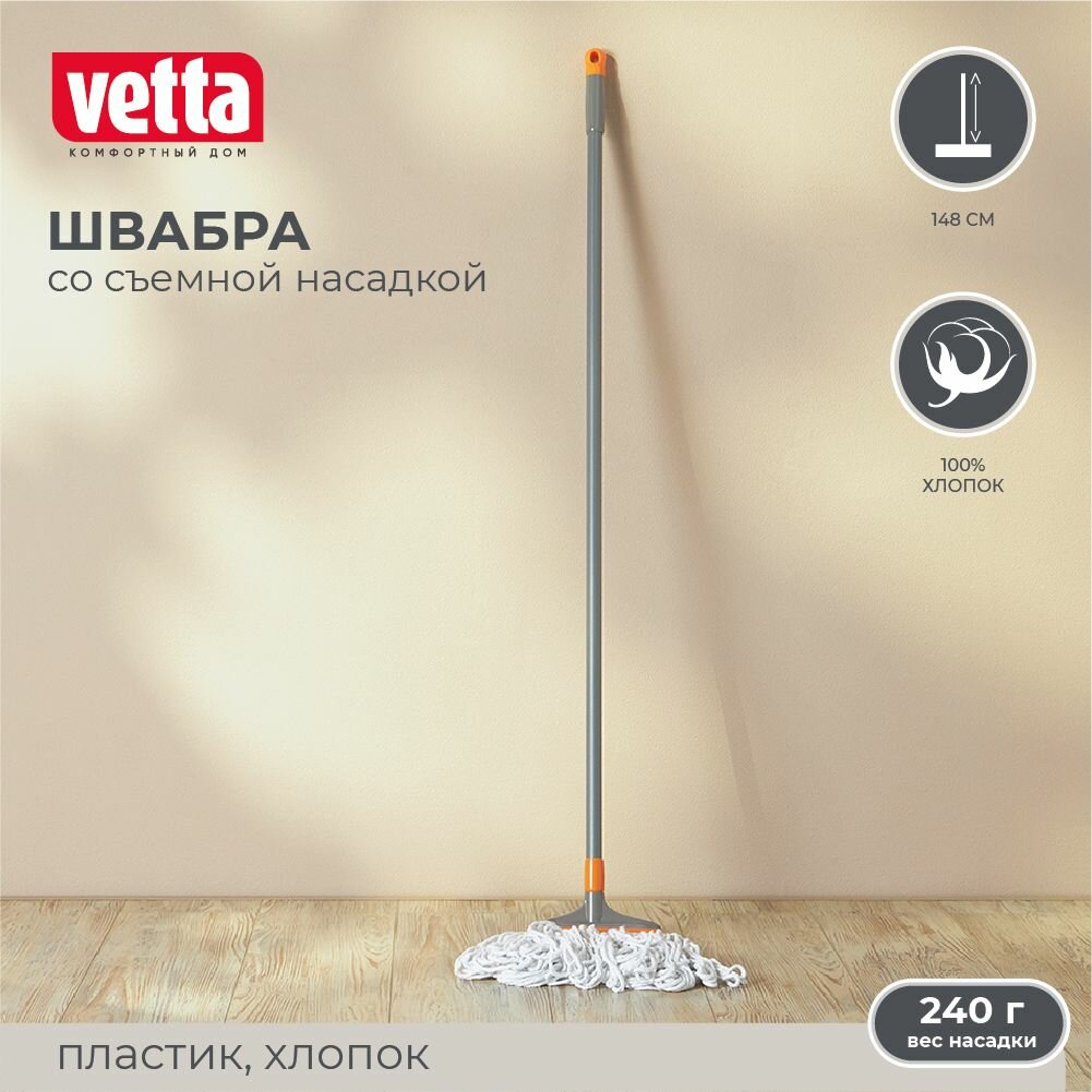 Швабра с насадкой из хлопка, вес 240 гр., длина ручки, 148 см