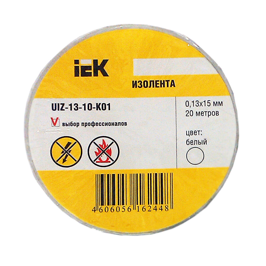 Изолента ПВХ 0.13х15мм (рул.20м) бел. IEK UIZ-13-10-K01 (1 шт.)