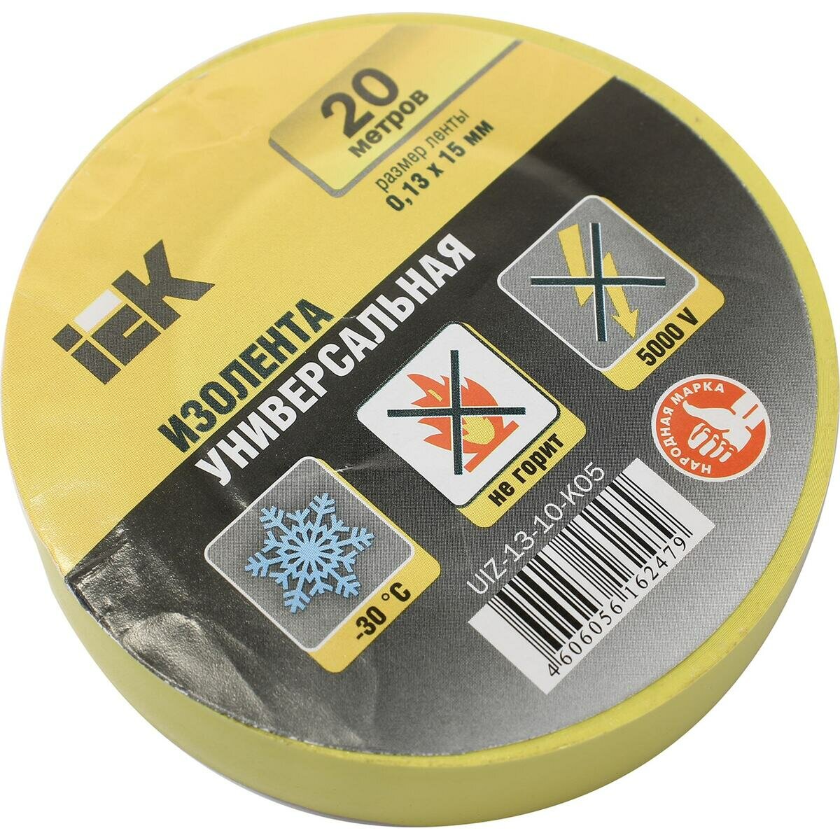 Изолента Iek 0,13х15 мм желтая 20 метров, UIZ-13-10-K05