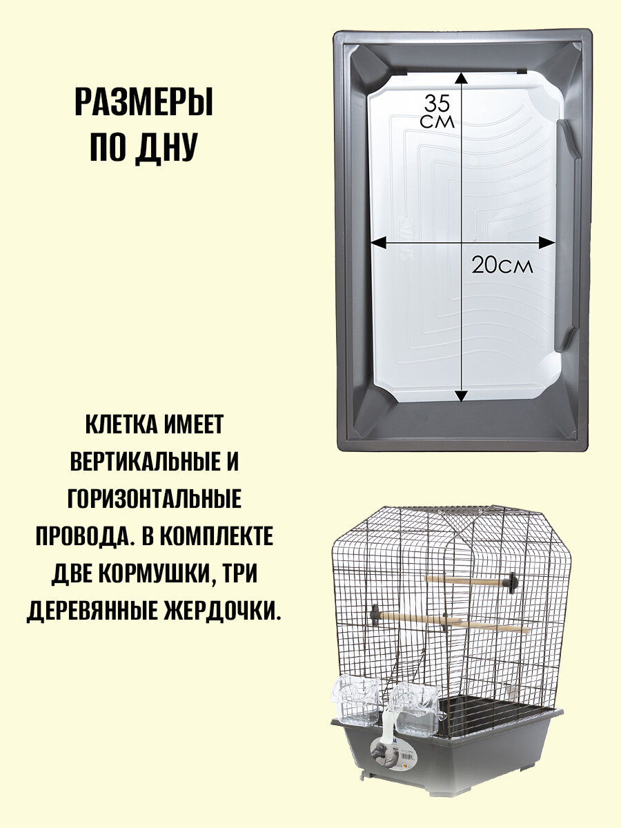 | Минусы: | Прутья горизонтальные, поэтому стандартные поилки и кормушки для фруктов не поставишь. |