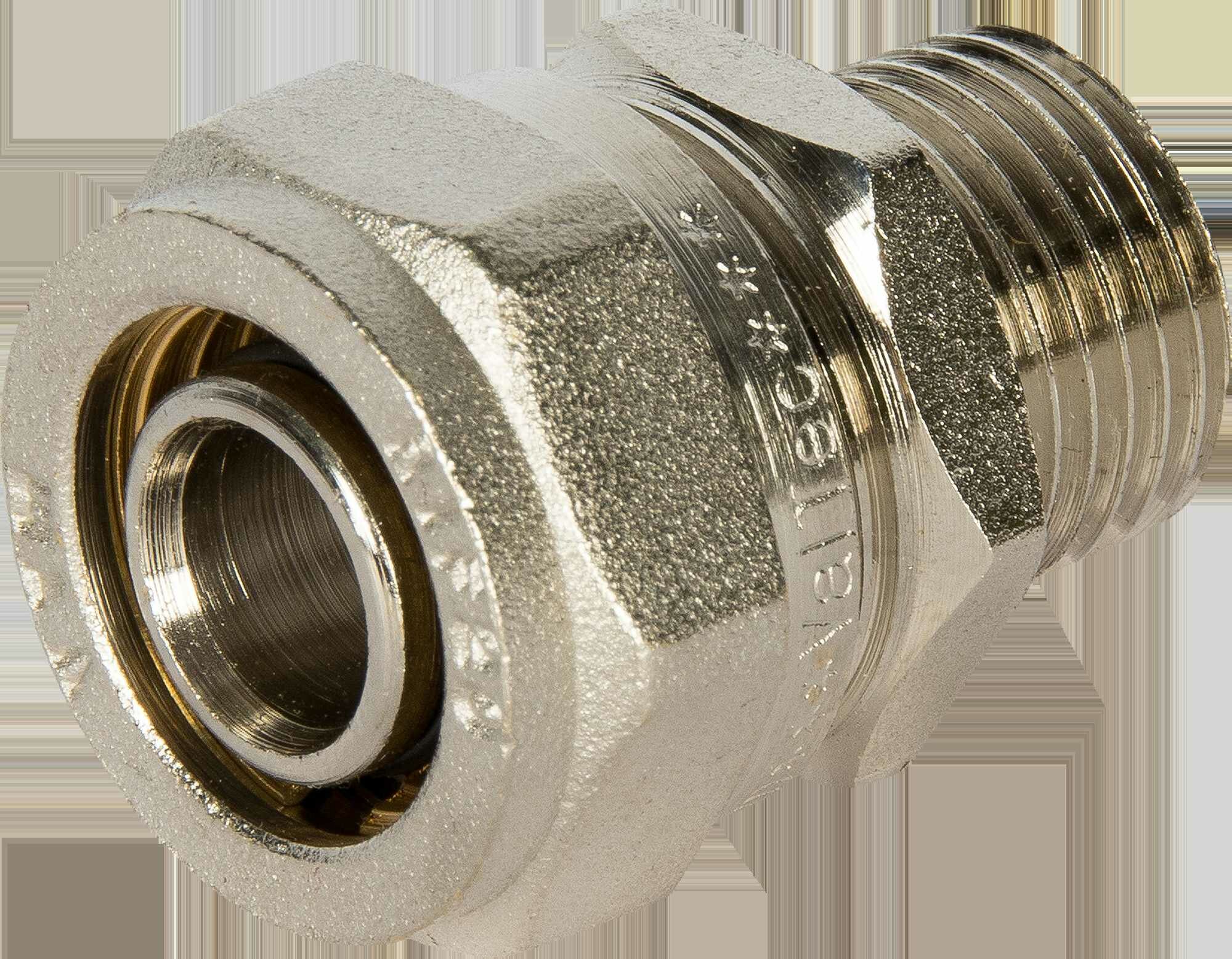 Фитинг обжимной 20 мм х 1/2" НР для металлопластиковых труб 20(2,0) VALTEC прямой / Латунное соединение под обжим с переходом на наружную резьбу ДУ15, арт. VTm.301.N.002004