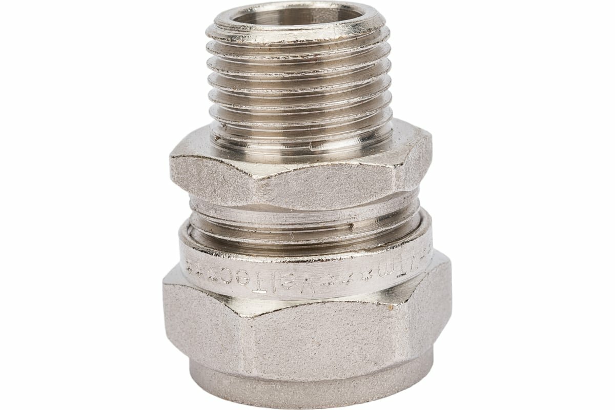 Соединитель обжимной Valtec наружная резьба 20х1/2" никелированная латунь VTm.301.N.002004