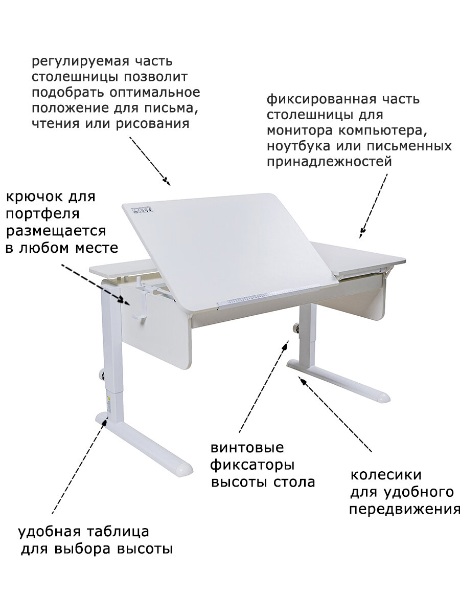 Парта растущая Лидер с выдвижным ящиком120х72см белый/белый/белый