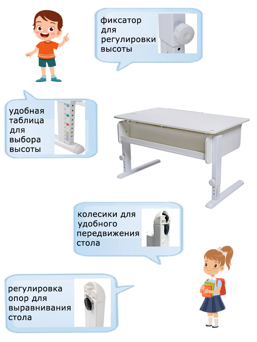 СохранитьСтол детский Астек-Элара Лидер с выдвижным ящиком 120x72 см белый/розовый/ белый интересное: