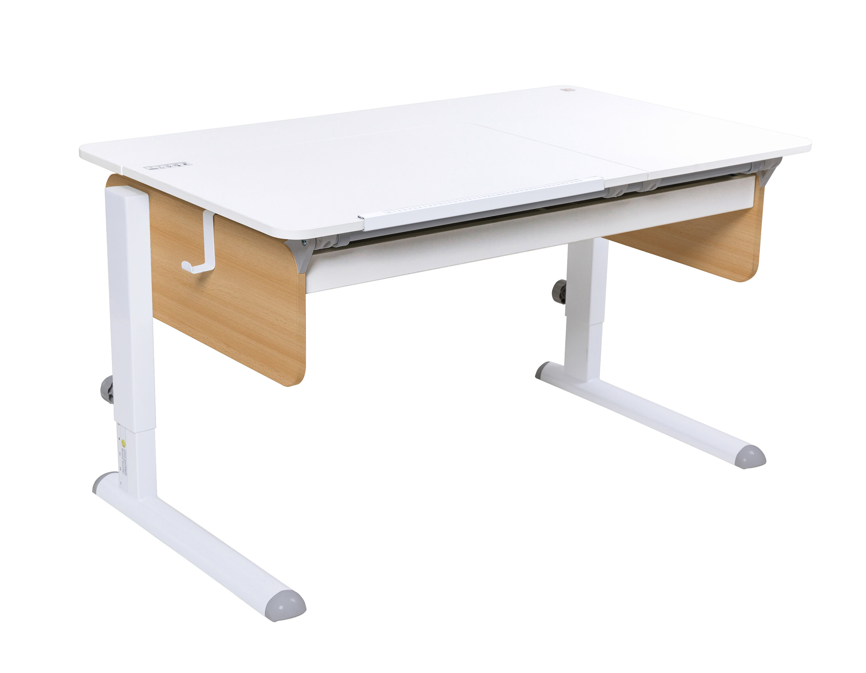 Купить Парта растущая Лидер с выдвижным ящиком 120х72см белый/бук/белый