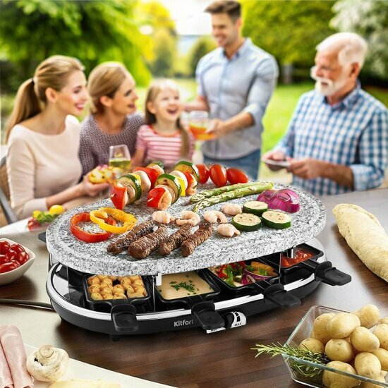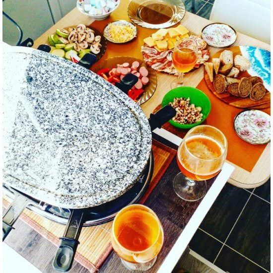 | Плюсы: | Раклетница это настоящая находка для тех, кому надоел обычный формат застолий с пиццей, суши или чем угодно заказанного с доставкой. Все гости сидят и сами готовят еду а параллельно общаются и кайфуют от процесса. Товар полностью оправдал мои ожидания, лопаток много (их 8), антипригарное покрытие хорошее, но все же требует капельку масла. Разогревается раклетница быстро, но надо быть аккуратным и не задеть рукой (капитан очевидность), ожоги остаются на ура. Ножки устойчивые, насадок много, есть как для просто гриля, так и для блинчиков, но главным лидером можно считать каменную накладку, на ней очень здорово готовить и она прикольно смотрится, но имейте в ввиду, что на ней даже после мойки остаются желтые пятна от готовки, не критично, но такой момент надо учитывать. |
