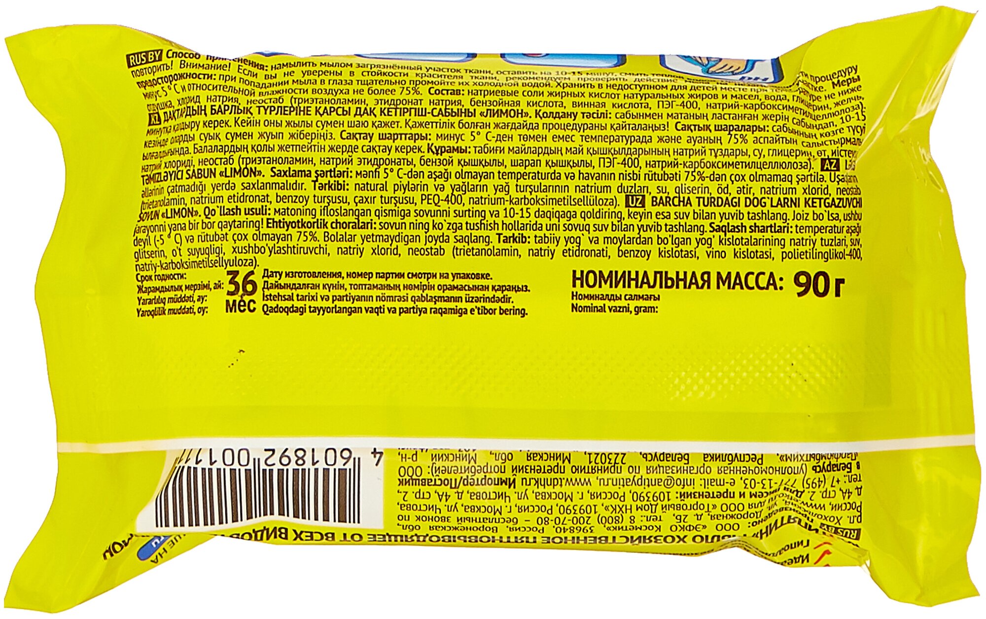 Мыло-пятновыводитель Антипятин от всех видов пятен с Лимоном, 90 г х 1шт