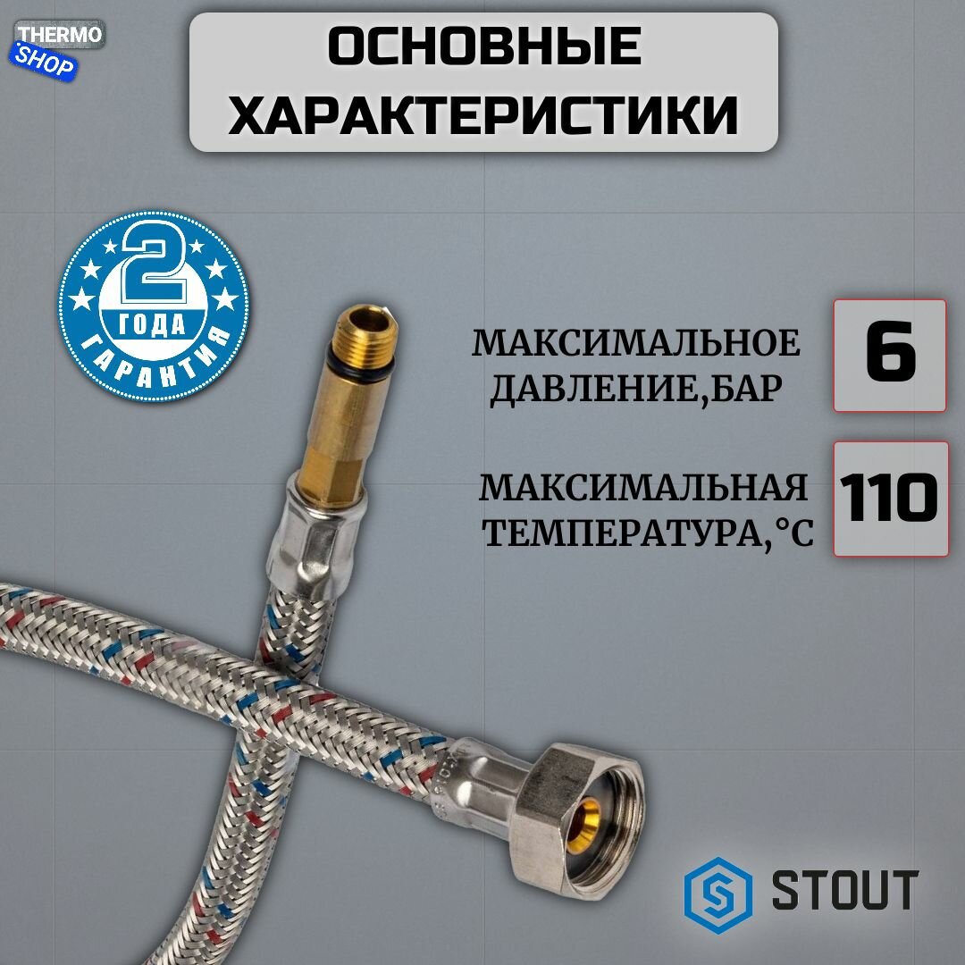 Гибкая подводка для воды STOUT SHF 008* 081517 гайка - штуцер ½