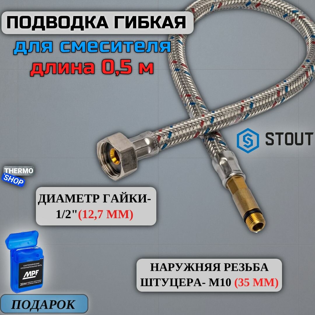 Подводка гибкая для смесителя Stout 1/2 ВР(г) х М10 штуцер 35 мм 50 см (SHF 0046 351015)