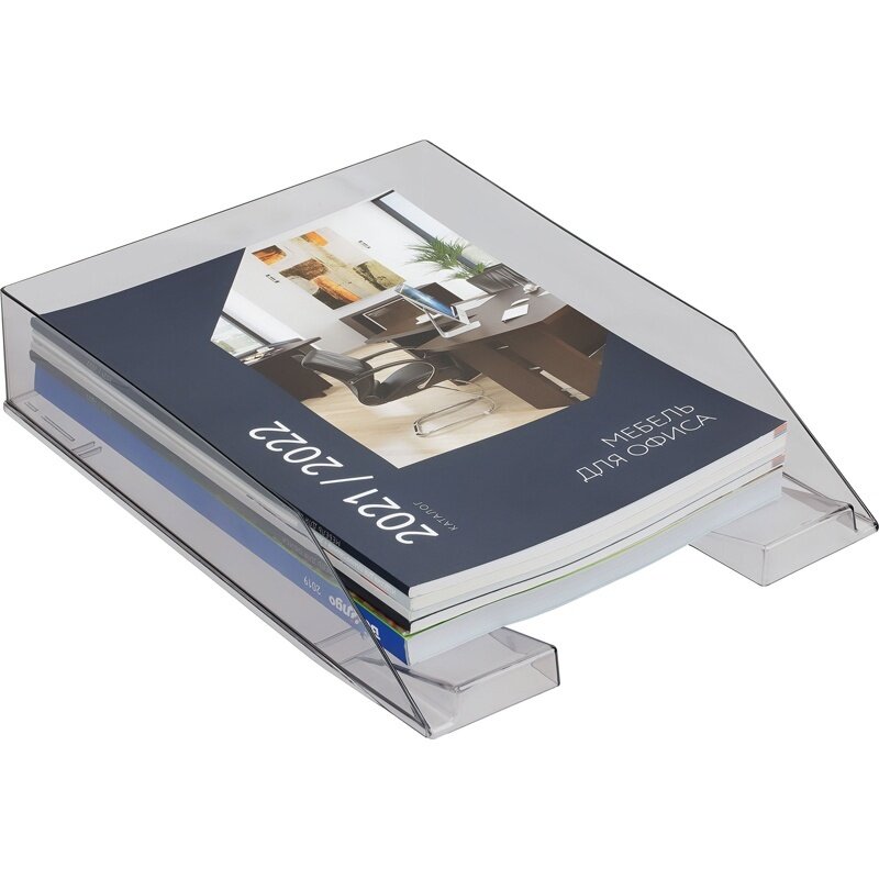 Лоток для бумаг горизонтальный СТАММ Каскад, тонированный серый ( Артикул 324144 )