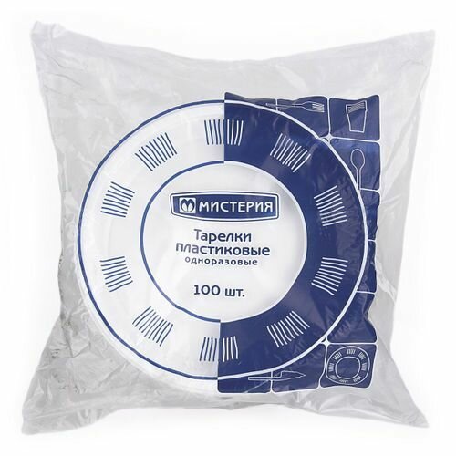 Купить Мистерия тарелки одноразовые пластиковые, 20.5 см, 100 шт., белый