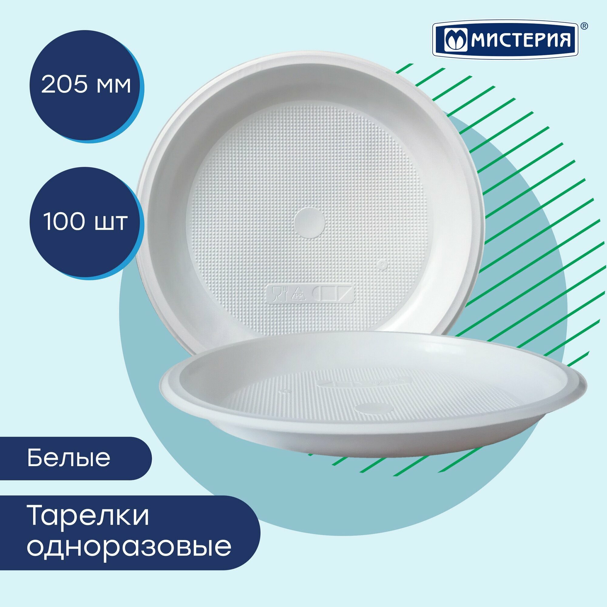 Мистерия Тарелки одноразовые, цвет белый, 100 шт, 205 мм, 1 уп