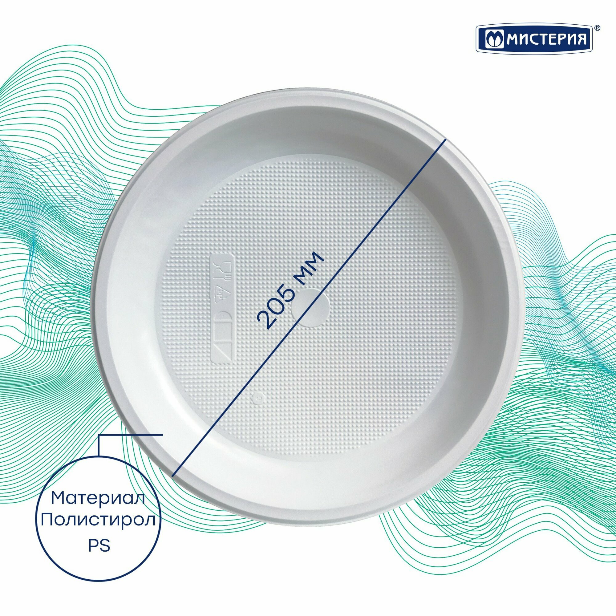 Одноразовая тарелка столовая Мистерия, 205 мм, 100 шт