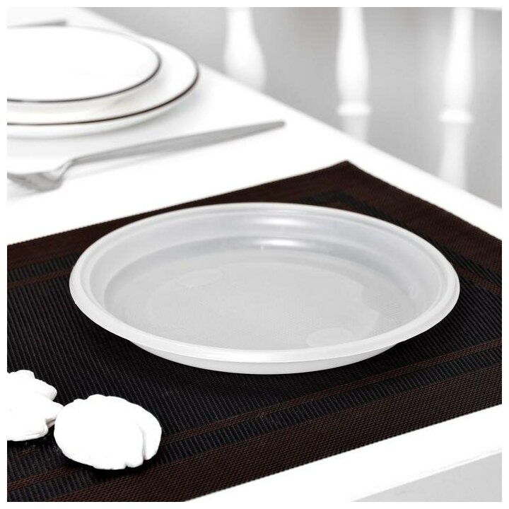 Тарелка одноразовая столовая, d-20,5 см, цвет белый, 100 шт.