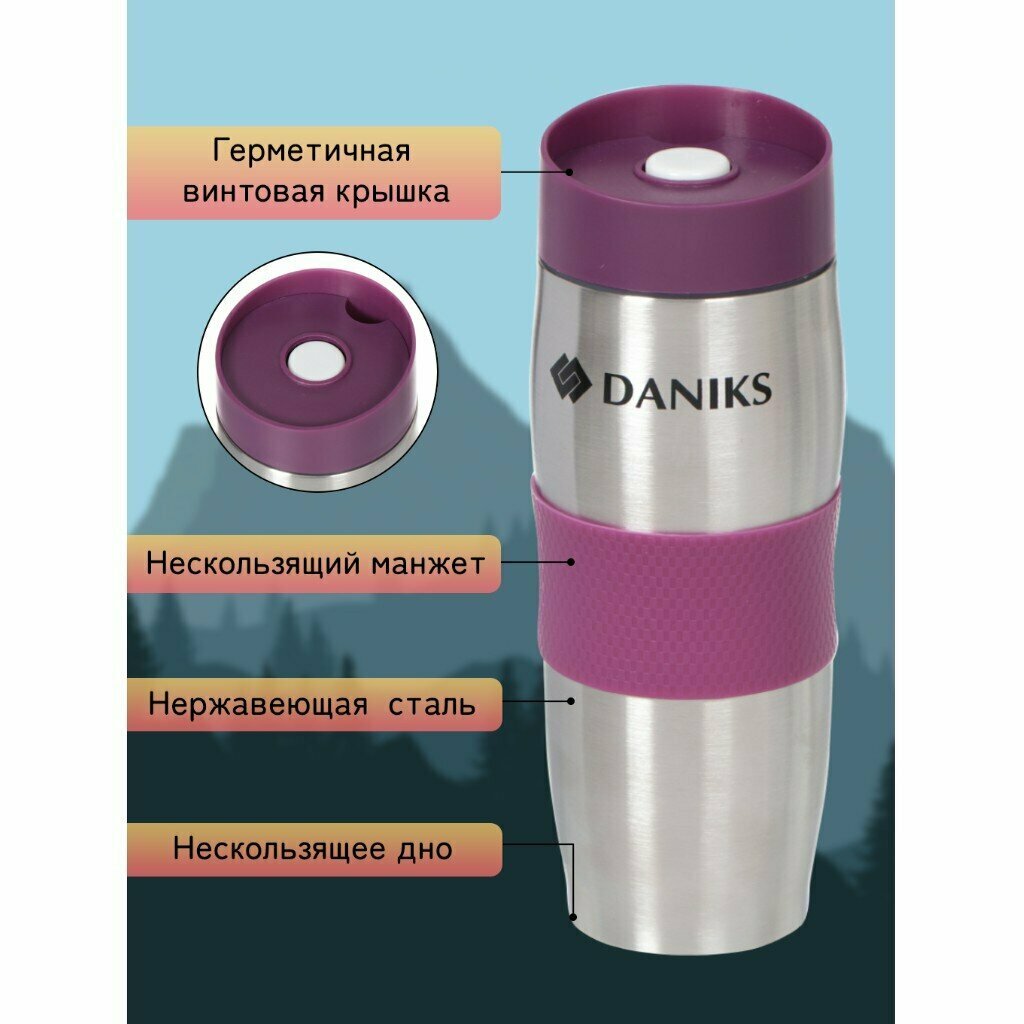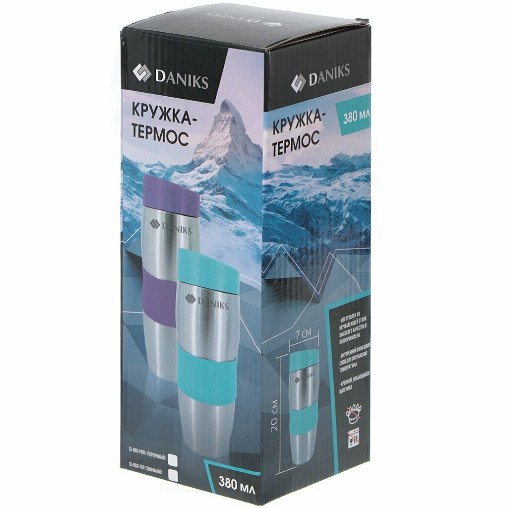 Купить Термокружка нержавеющая сталь, пластик, 0.38 л, Daniks, черничная, SL-069