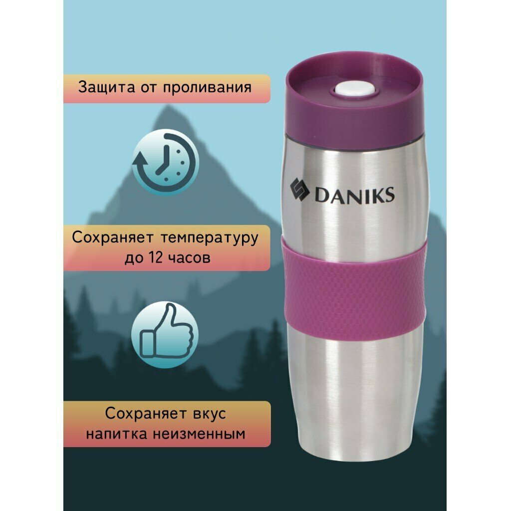 Термокружка нержавеющая сталь, пластик, 0.38 л, Daniks, колба пластик, черничная, SL-069