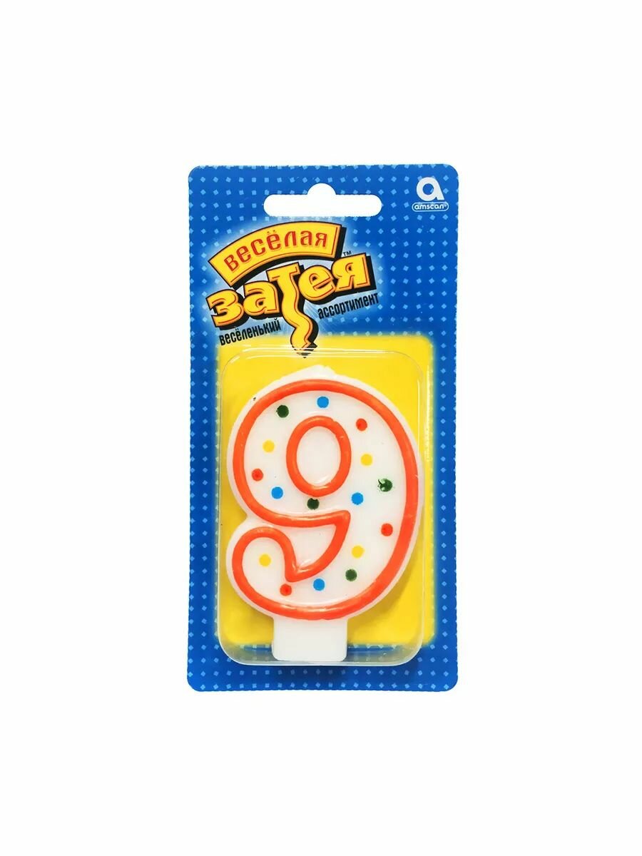 Свечи для торта, Весёлая затея, Свеча-цифра 9