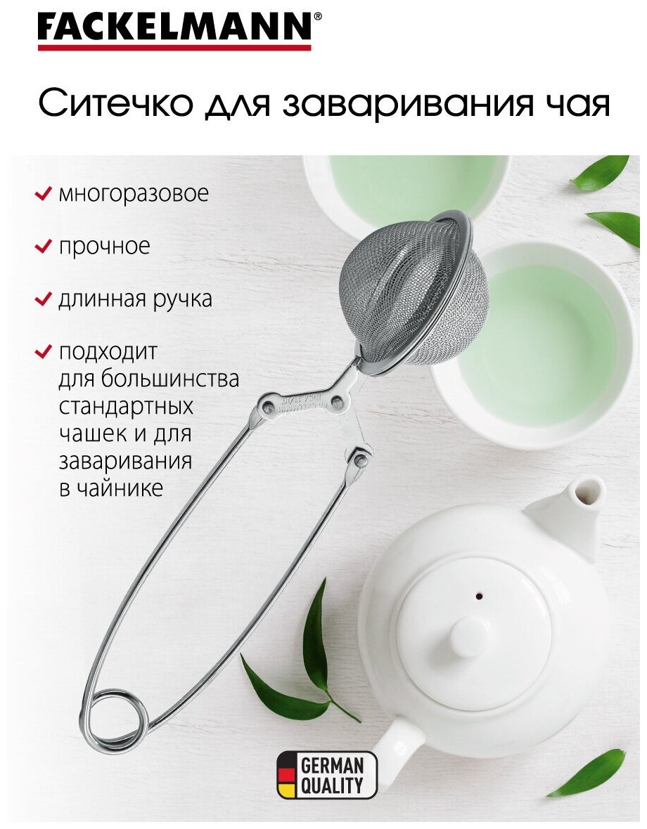 FACKELMANN Ситечко для заварки, 15,5 см, диаметр 4 см, ситечко щипцы для заваривания чая, фильтр для чая, заварка в чашке интересное: