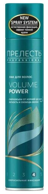 Прелесть Professional Лак для волос Volume Power Сверхобъем с частицами микропудры, сильная фиксация, 300 мл