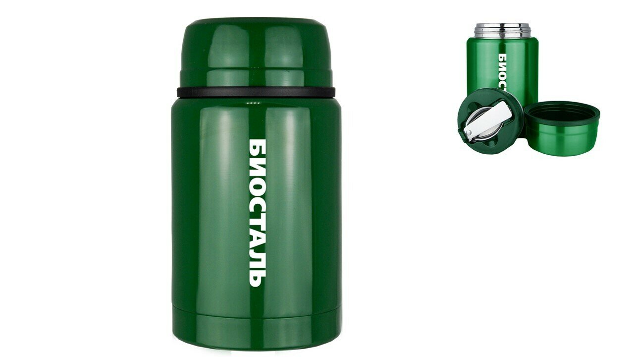 Термос для еды Biostal Охота (0,75 литра), с ложкой, зеленый