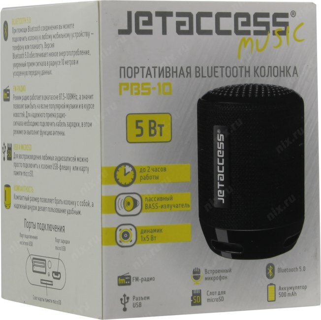 Ниже Вы можете прочитать отзывы на Колонка Jet.A PBS-10 Black (5w, Usb, Bluetooth, microSD, FM, Li-Ion), ознакомится с подробными характеристиками, посмотреть интересные обзоры и фотографии на Колонка Jet.A PBS-10 Black (5w, Usb, Bluetooth, microSD, FM, Li-Ion).