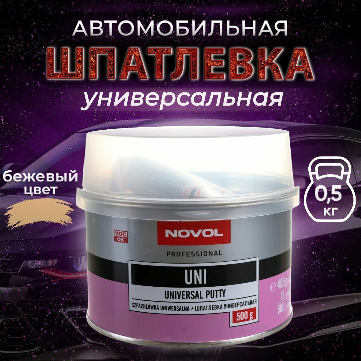 Комплект (шпатлевка, отвердитель) NOVOL UNI бежевый 0.5 кг 500 мл