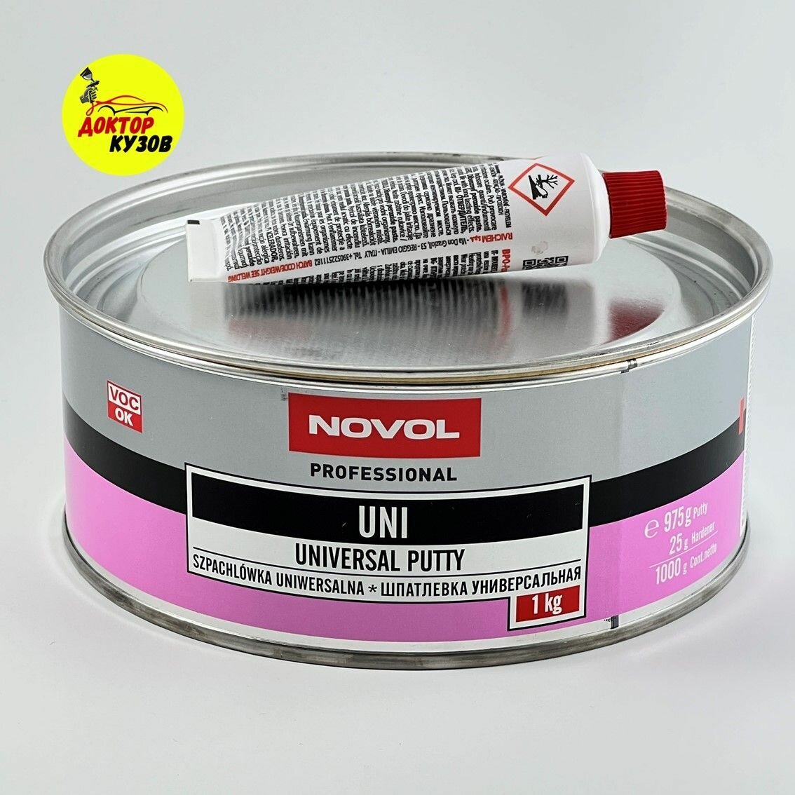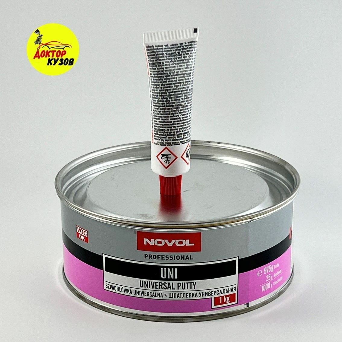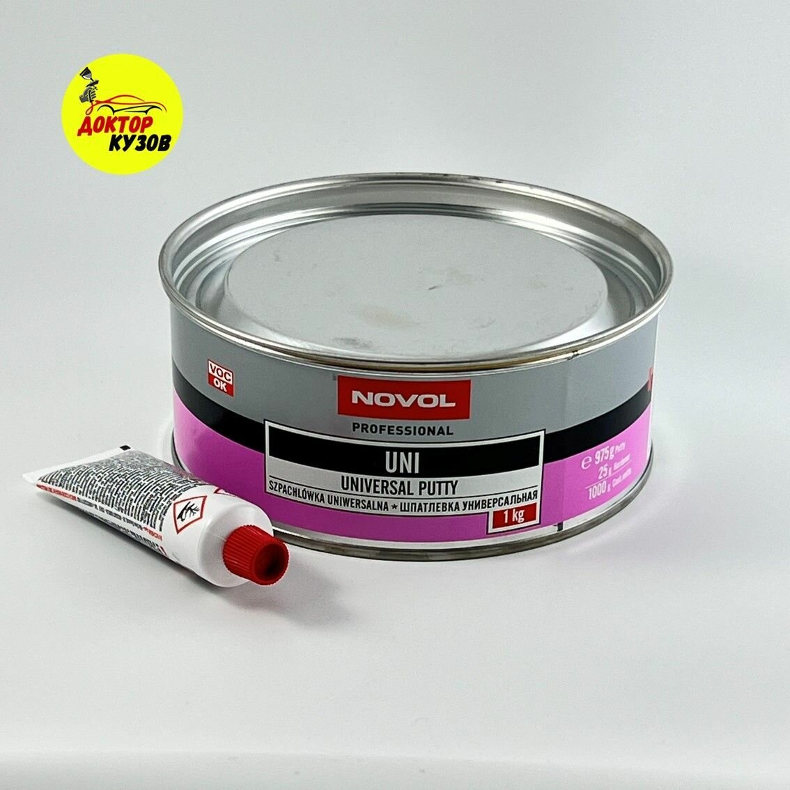 NOVOL 1103 Шпатлевка 1кг - универсальная полиэфирная заполняющая шпатлевка UNI, бежевая, в комплекте с отвердителем 1шт