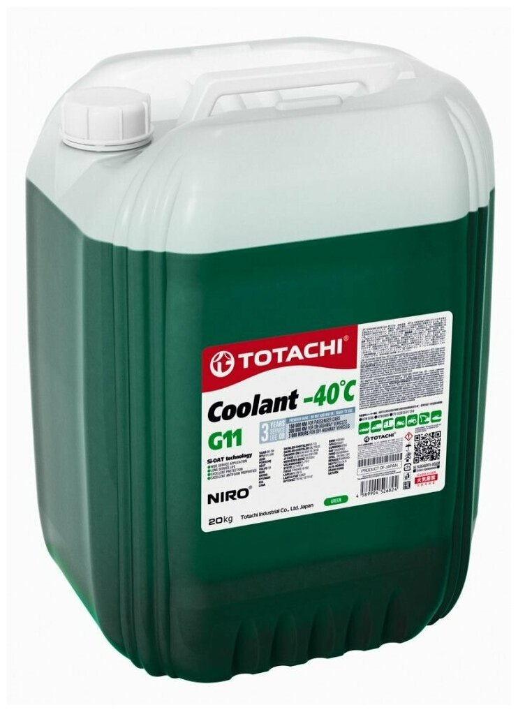 Охлаждающая жидкость totachi niro coolant green -40c g11 20кг, TOTACHI 43220 (1 шт.)