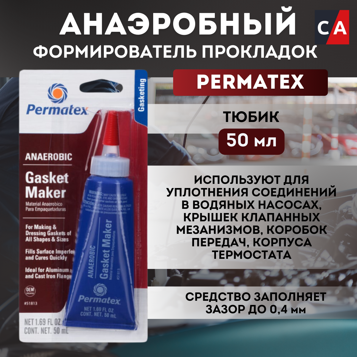 PERMATEX 51813 Формирователь прокладок анаэробный для алюминиевых поверностей, фланцев насосов, термостатов, корпусов, КПП, крышки картера Anaerobic Gasket Maker красный, 50 мл в блистере