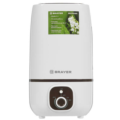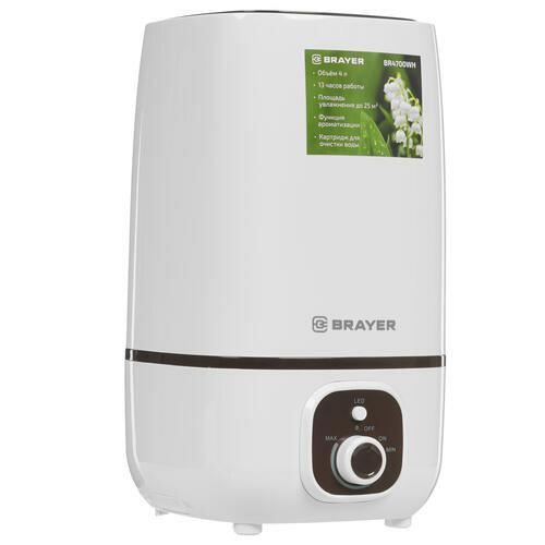 Увлажнитель BRAYER BR4700WH, объем бака 4 л, 25 Вт, арома-контейнер, белый