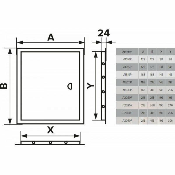 Л2040Р, Люк-дверца ревизионная 218х418 с фланцем 196х396 с ручкой АБС