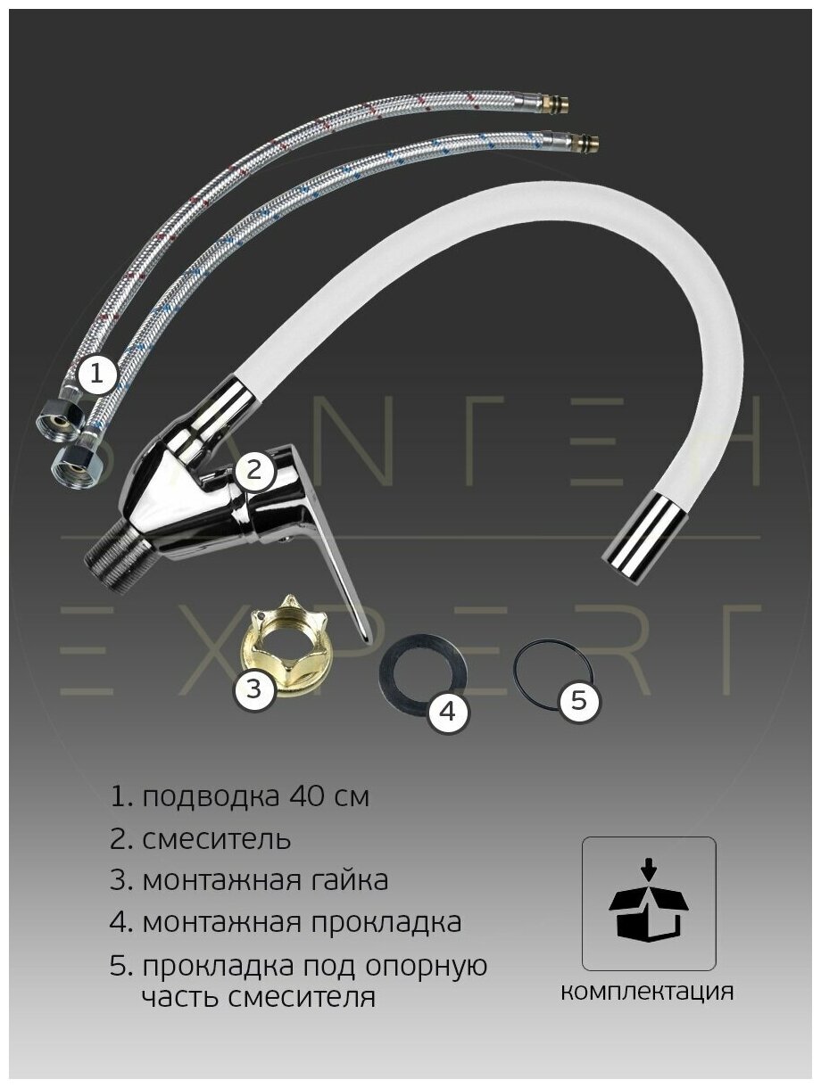 Смеситель с гибким краном для раковины на кухню и ванную. Умывальник с высоким изливом и аэратором Смеситель для кухни с поворотным гнущимся изливом VIKO V-4148 цвет белый, хром