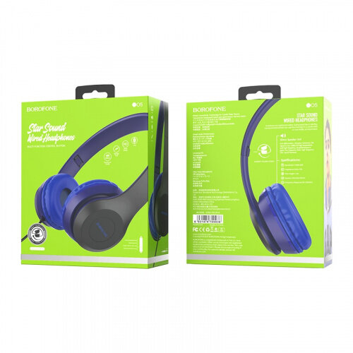 Наушники проводные полноразмерные Bluetooth Borofone BO5 Star Blue