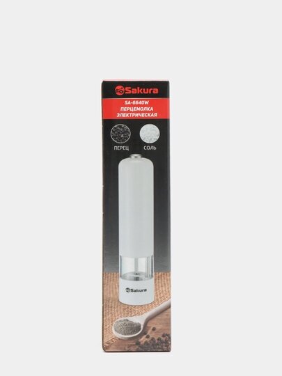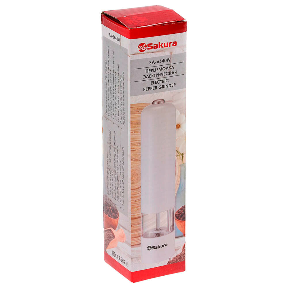 Мельница для перца, Sakura SA-6640W, нержавеющая сталь, электрическая, белая, 1 шт.